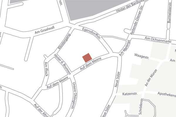 Sie erreichen unser Altstadthaus mit dem PKW von der Straße "Am Graalwall" aus, indem Sie durch die beiden Einbahnstraßen "Klostergang" und "Hinter dem Brunnen" zur Straße "Auf dem Meere" fahren.