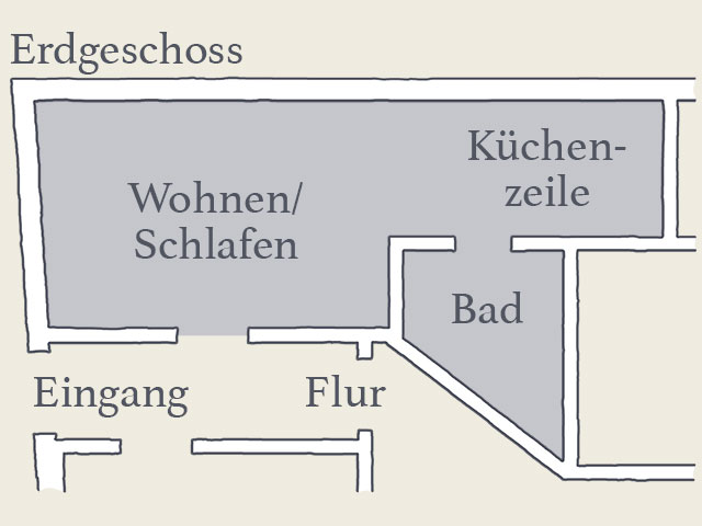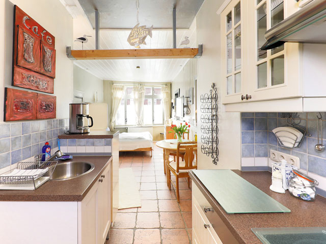 Diese Ferienwohnung befindet sich im Erdgeschoss im vorderen Bereich des Hauses mit Blick auf die ruhige historische Straße. Das Studio ist ca. 25qm groß und eignet sich für 1-2 Personen.