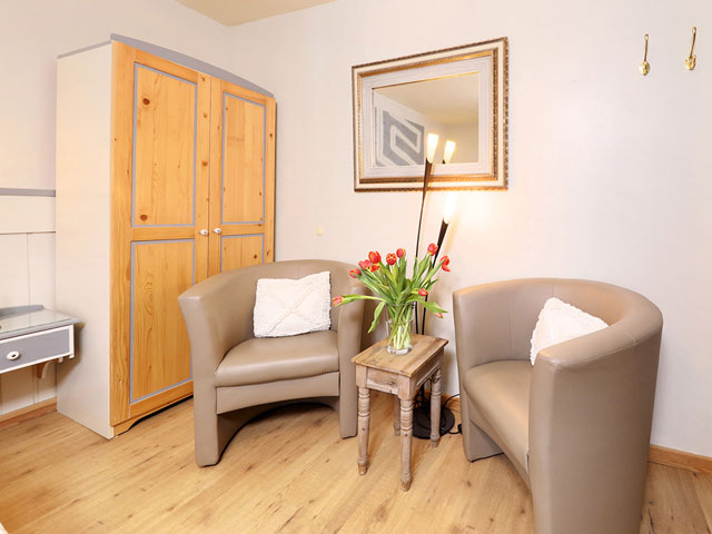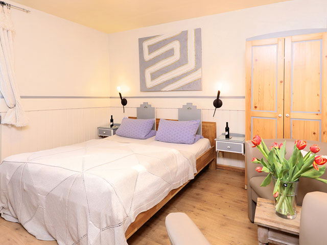 Die Ferienwohnung 3 befindet sich im 1.OG im hinteren Bereich des Hauses mit Blick auf den Innenhof. Die Wohnküche ist durch ein Fachwerk vom Schlafbereich abgeteilt. Das Studio ist ca. 25qm groß und eignet sich für 1-2 Personen.